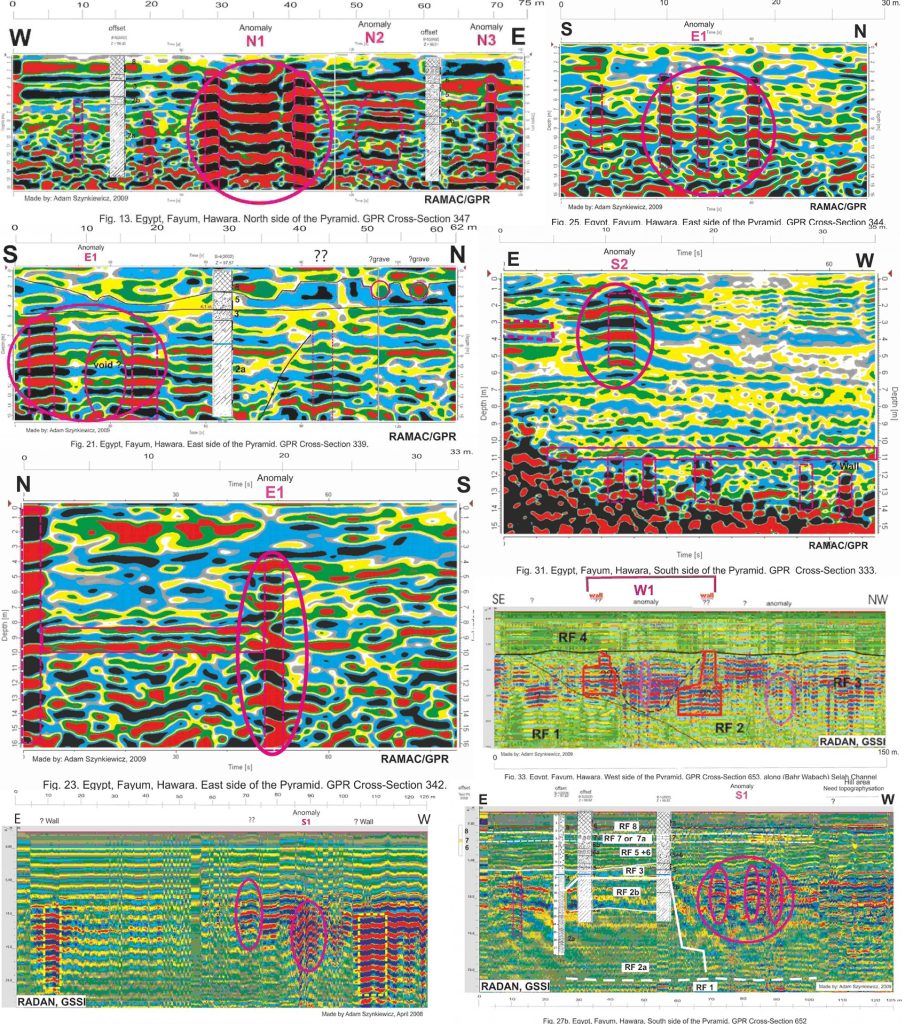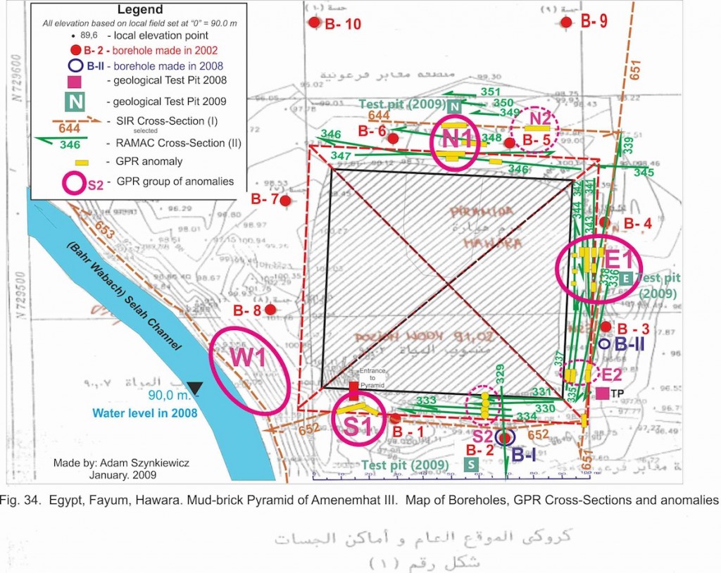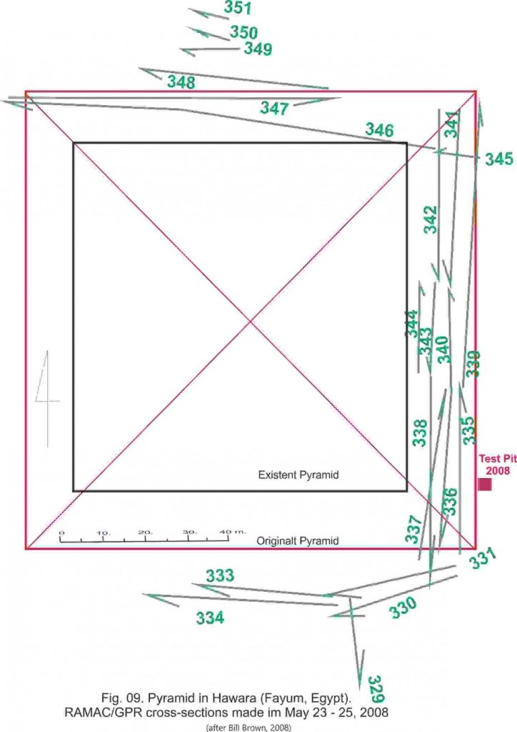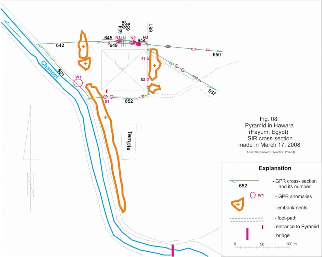 Additional report from Wroclaw University: https://www.researchgate.net/publication/292139616_GPR_research_around_the_Hawara_pyramid_Fayum_Egypt