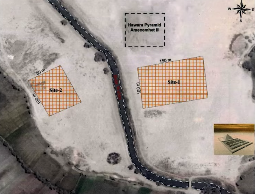 Dr. Abbas, NRIAG report on Hawara: https://www.researchgate.net/publication/277389608_VLF-EM_study_for_archaeological_investigation_of_the_labyrinth_mortuary_temple_complex_at_Hawara_area_Egypt