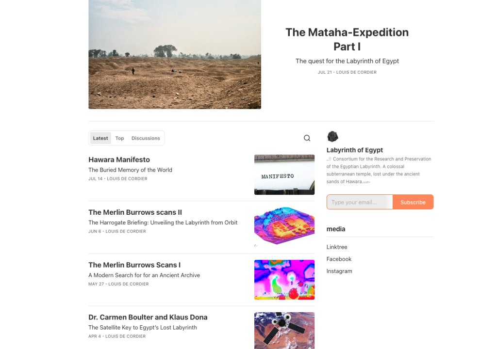 Labyrinth of Egypt Substack, by Louis De Cordier: https://labyrinthofegypt.substack.com/