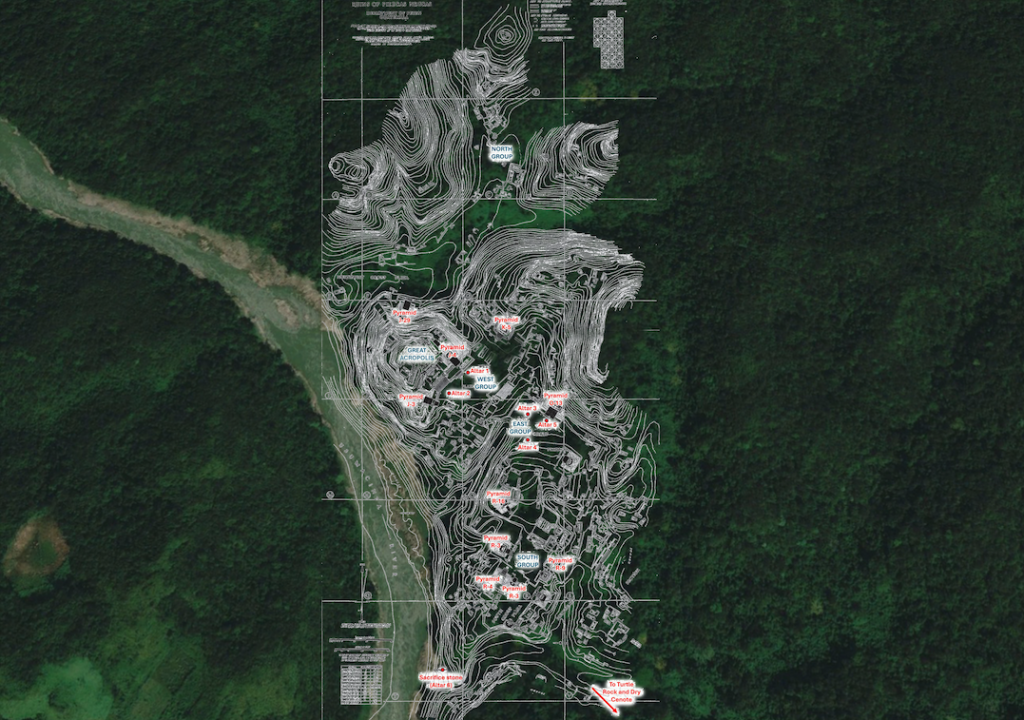 It is a sprawling pyramid complex spread over at least a seven kilometer stretch of isolated rainforest on the eastern bank of the Usumacinta River, which serves as the Mexican, Guatemalan border. Most of the pyramids are swallowed by the jungle, indistinguishable from hills heavily overgrown.
